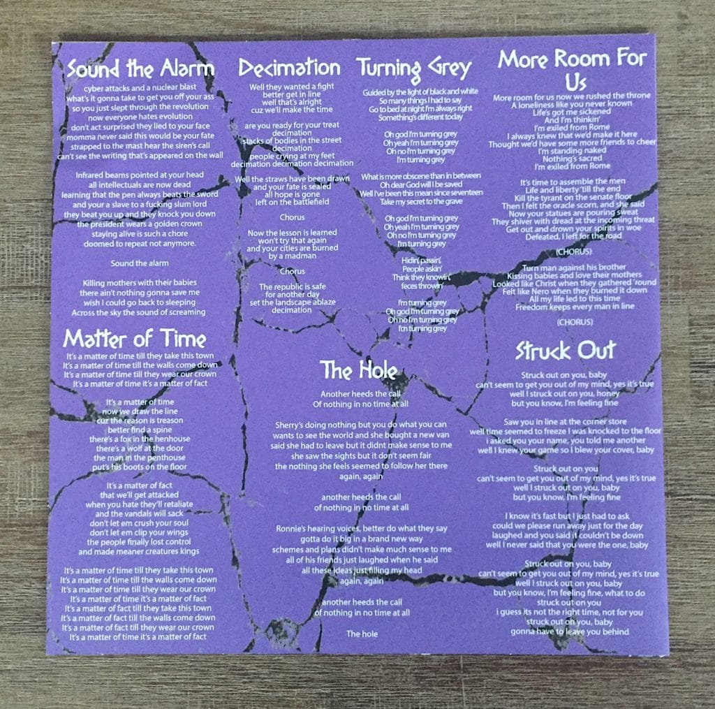 Doomed II Repeat is a swift slap in the face. A heavy concept record about the inability of society to not repeat past failures. While the subject matter carries a lot of weight, the songs don’t come across as overly anxious like you may expect. Rather, you get very well conceived songs that flux between robotic trashcan rock a la A Frames on tracks like “Decimation,” to a cow punk stomp on “Turning Grey,” and then to a more garage twang in the final two tracks, “The Hole” and “Struck Out.”